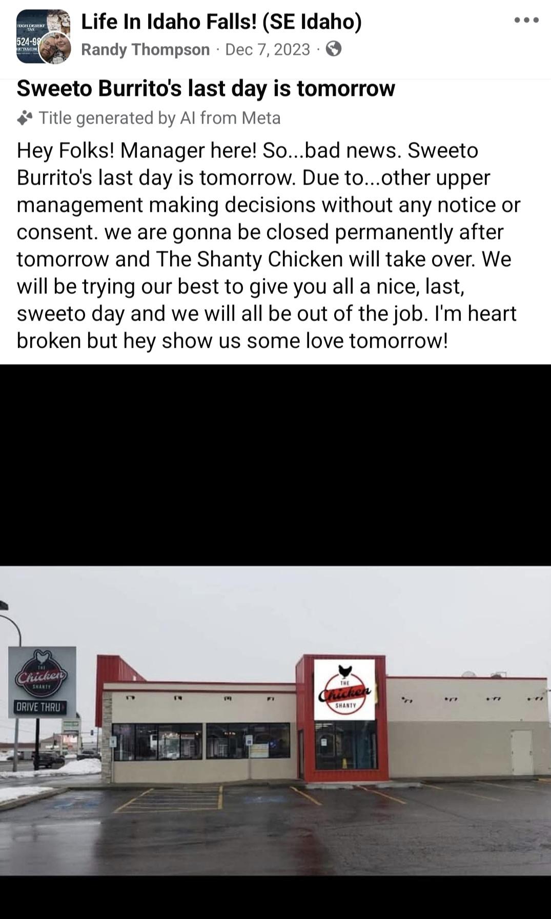 Cratter Posted 1 hour ago Posted 1 hour ago All this chatter made me think "whatever happened to Sweeto Buritto." A quick Google search showed it closed its Fargo locations....but now reopened....as online doordash etc delivery. No physical location in Fargo. They opened a couple places in Utah/idaho/washington..but some (all) closed too? And maybe now just run "ghost kitchens"? They seemed desperate to make the franchise model work...with some "interesting" business practices...prioritized money over management? Quote
