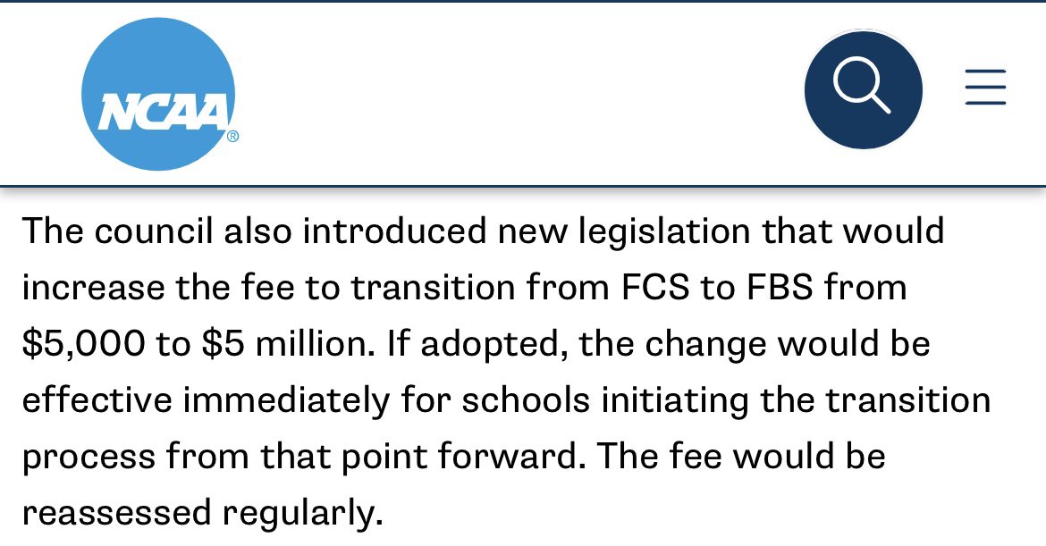Nodak78 Posted June 28, 2023 Posted June 28, 2023 Well this will change some schools moving from fcs to fbs. Quote