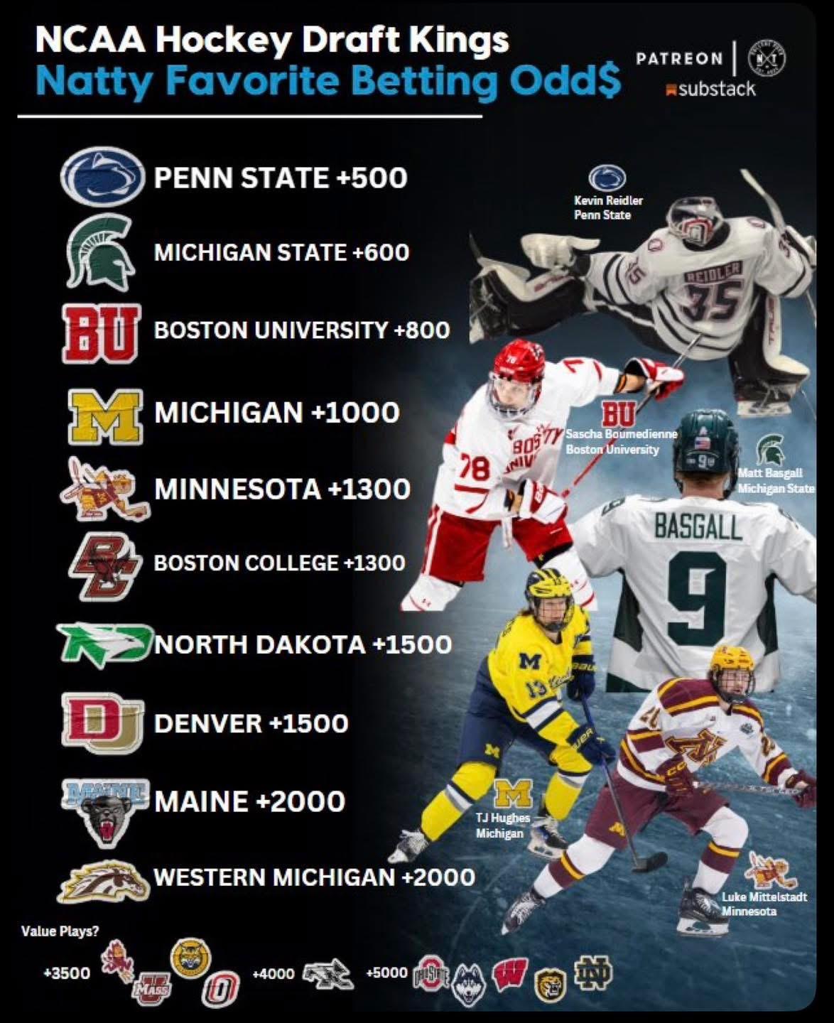 Blackheart Posted Tuesday at 04:03 AM Posted Tuesday at 04:03 AM 2 hours ago, nascar99 said: The problem is that outside of Schlossman (biggest voice, but not super well known outside of NCAA diehards) & then to a lesser extent, McMahon, Divver, & Peters, no one with intimate knowledge of NCAA Hockey writes articles that well. And because hockey is a top down sport where far more people follow the NHL as opposed to amateur options like the NCAA, junior, etc, it means that articles are going to have a very professional slant/bias to them, instead of focusing on who is best set to win NCAA National Championships. So Draft Kings has four B1G teams in their top 5 for betting odds on winning the Natty. Are they kind of clueless about college hockey as well? You would think they need to know what the hell they're talking about. Quote