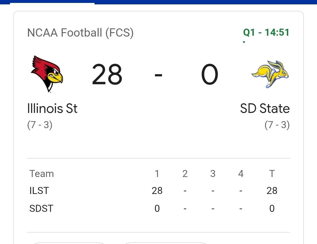 Siouxperbb32 Posted 1 hour ago Posted 1 hour ago 21 minutes ago, Hans8891 said: SDSU is going to have its hands full with Illinois State today, so they may have their 4th conference loss going into next week. Their QB is still out from what is being said on the broadcast. They lose today and will have everything on the line playing us next week…. 21-0 redbirds 10 mins left in 1st qrt 😬 Quote